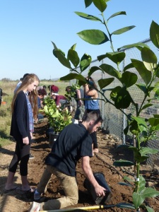 Ann Sobrato High School students are working on planting hedgerows around their demonstration farm.